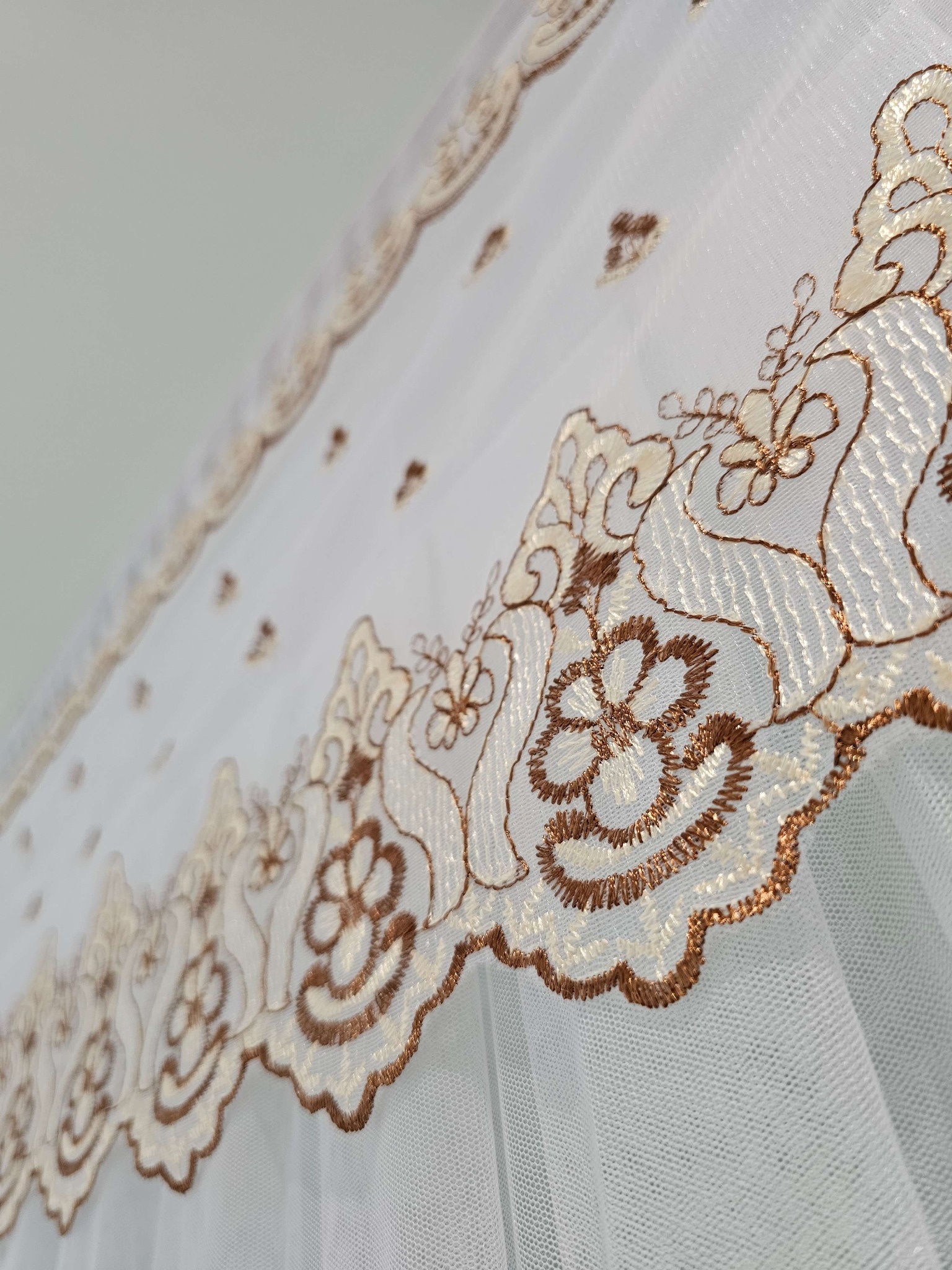 - Vải màn sử dụng loại 𝐓𝐎̂́𝐓 𝐍𝐇𝐀̂́𝐓 hiện nay. Mắt màn nhỏ, vải suôn, trơn mềm mịn, sờ mát tay, vò màn không để lại nếp nhăn. Độ vải bền > 10 năm sử dụng. Chiều cao màn 2,2M cao, rộng, thoáng. Màn cầm nặng tay chứ không mỏng nhẹ như loại rẻ. Chất liệu vải cao cấp nên không lo bị nhão vải, co rút, hay bị nổ mắt vải như loại rẻ. Ren ốp trang trí, viền ren xếp li đều sử dụng loại cao cấp.