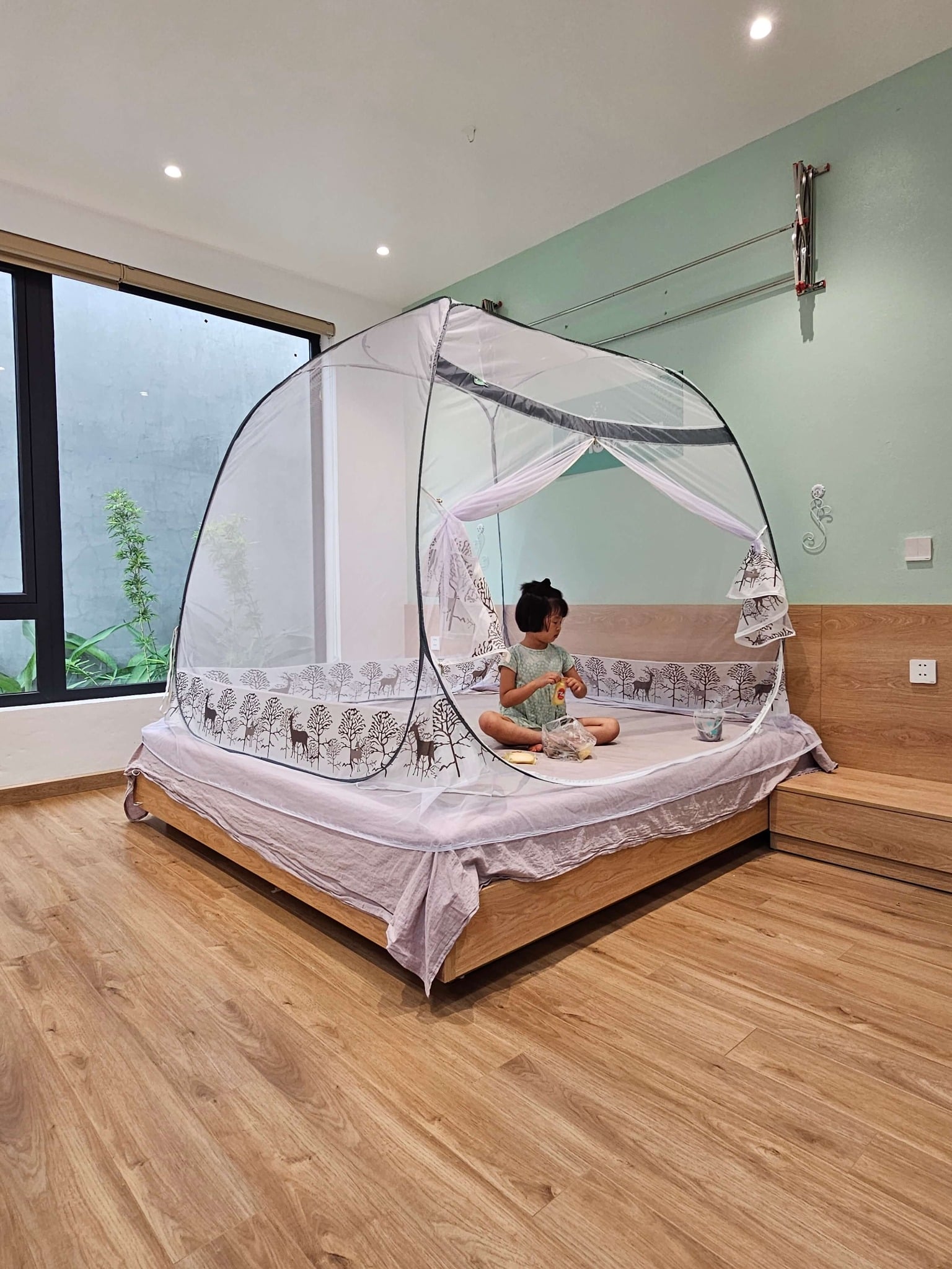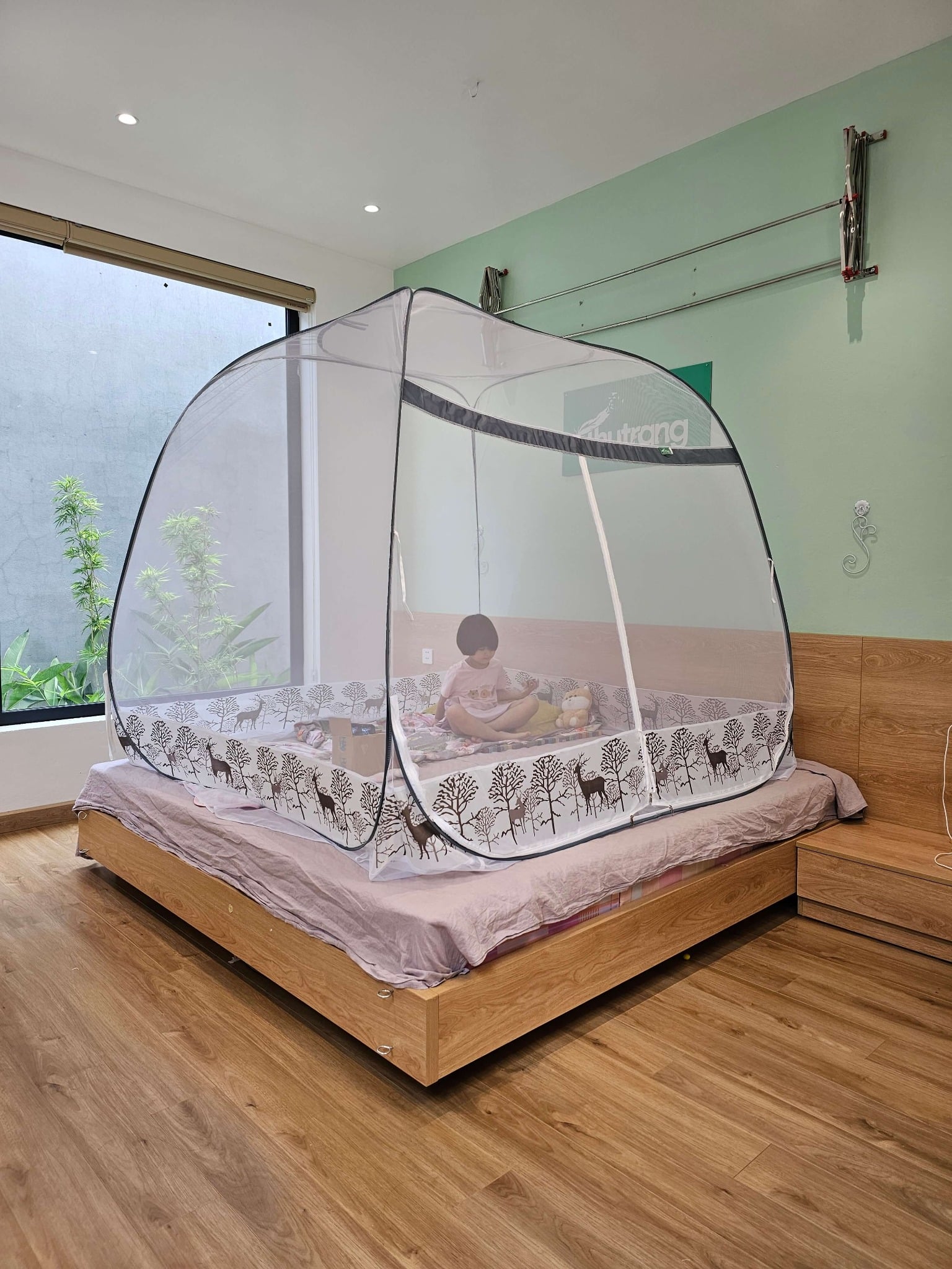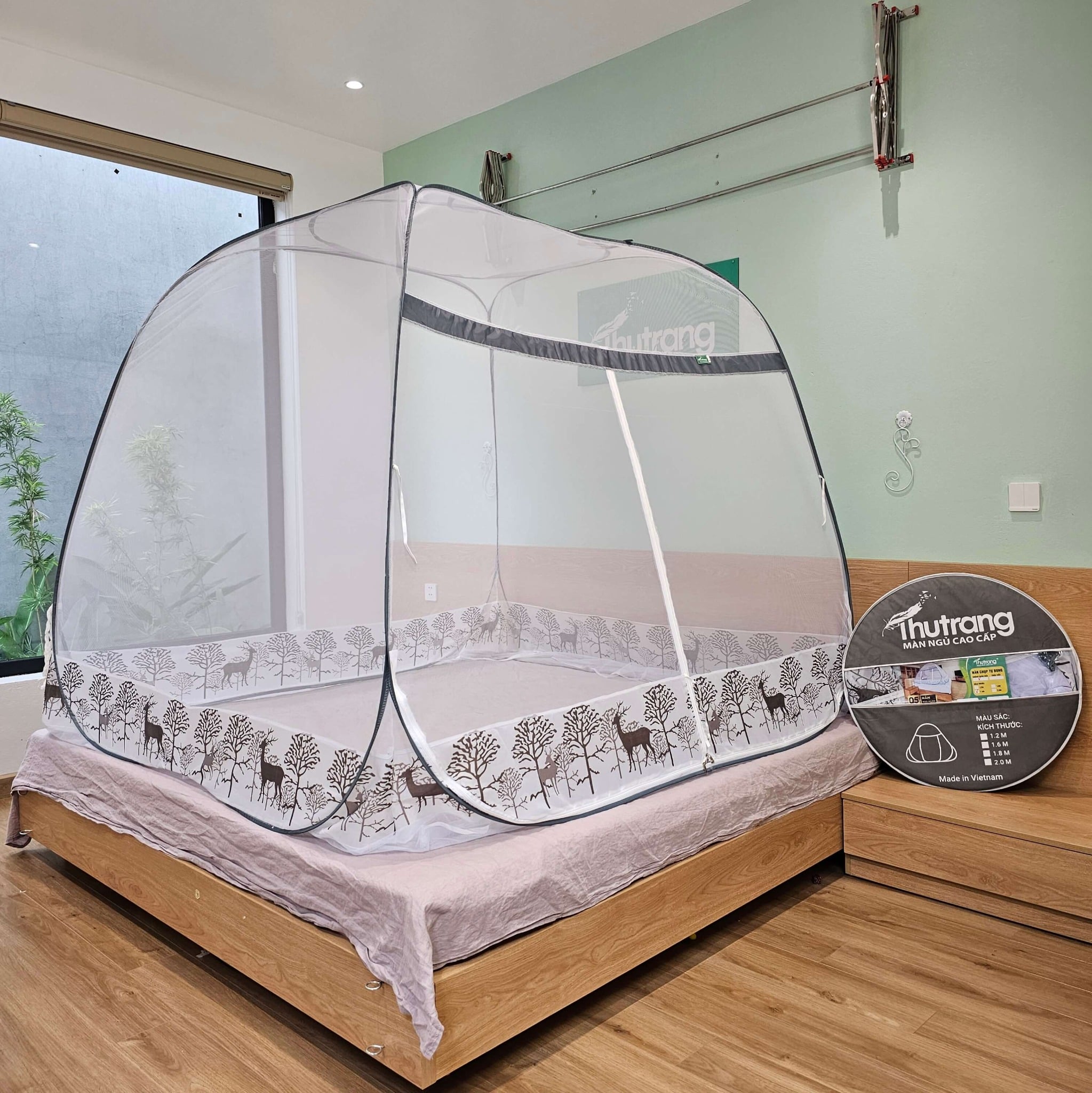Màn Chụp Tự Bung Đỉnh Rộng Thu Trang là mẫu cải tiến mới với thiết kế cửa màn vén sang 2 bên giúp khách hàng có thể sử dụng màn dễ dàng, tiện lợi hơn, đặc biệt, giúp phòng gọn gàng, đẹp, thoáng hơn ngay cả khi bạn để màn cả ngày trên giường hoặc trong trường hợp dùng quạt thổi vào trong màn tiện lợi.