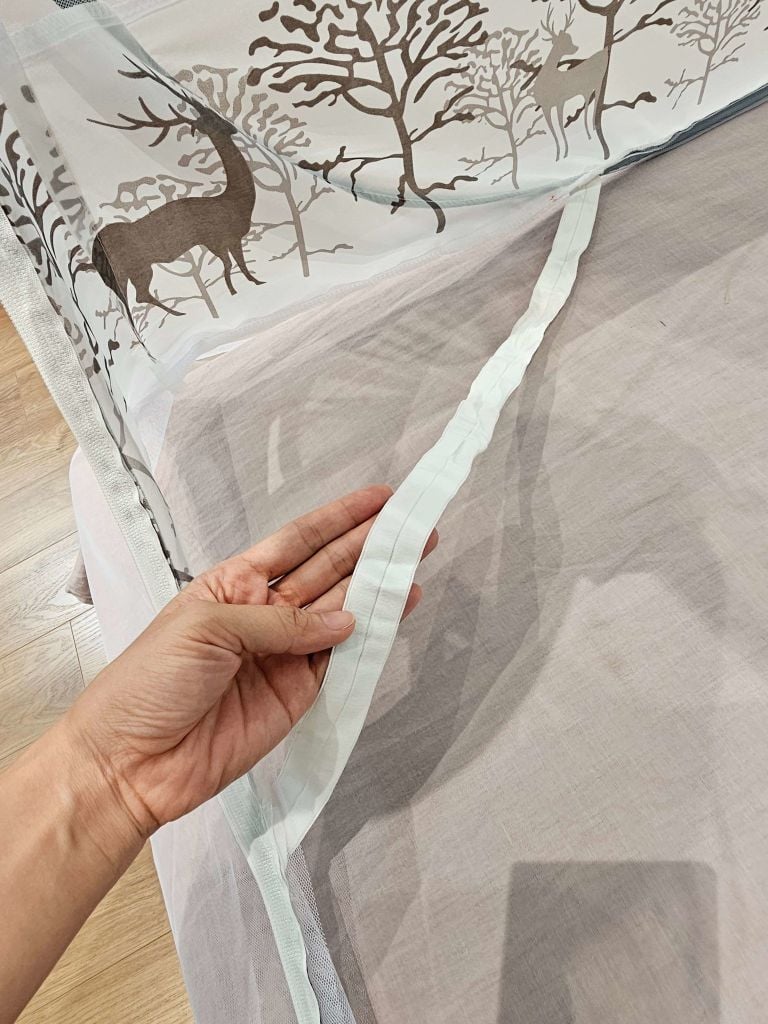 Với phương châm luôn mang tới những sản phẩm có chất lượng tốt nhất cho khách hàng, vải màn sử dụng loại tốt nhất với mắt màn nhỏ, dai, lì, bền, giúp chống muỗi hiệu quả và hạn chế tối đa lo nhão, thủng, nổ mắt vải và tăng tối đa độ bền cho sản phẩm. Đây là loại bền đẹp, giá cao và ít được sử dụng cho màn chụp tự bung.