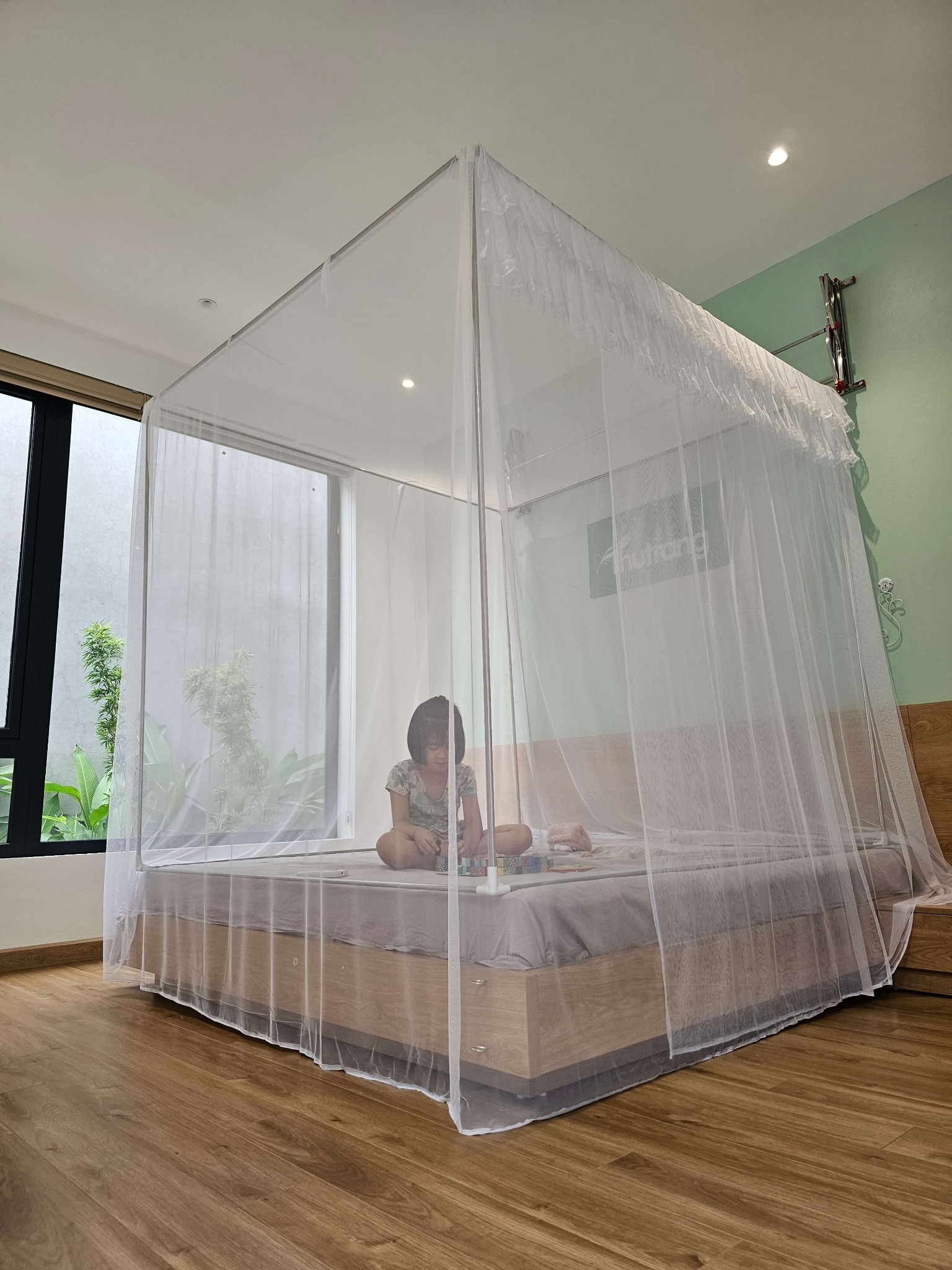 Màn cao, rộng, thoáng, giao cửa rộng, chiết góc vuông vắn, shop may cẩn thận, chắc chắn